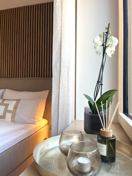 Wir bieten anspruchsvollen Gästen einen Ort, an dem man gerne länger bleibt, himmlisch schläft, designig sitzt, guten Espresso trinkt, entspannt arbeitet oder sich einfach erholt und sich fast wie zuhause fühlt. Neben Hotelbettwäsche, flauschigen Badetüchern und Pflegeprodukten erwarten Sie WLAN, Smart TVs, Top Infrastruktur und voll ausgestattete Küchen, Getränke und gemütliche Außenbereiche. Wir möchten, dass jeder Aufenthalt bei uns zu einem Erlebnis wird und jeder Gast wiederkommen möchte.