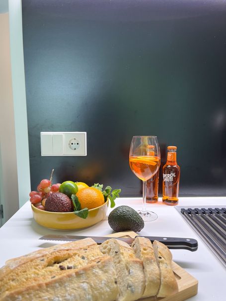 In der voll ausgestatteten Küche findest du neben Herd, Backofen, Kühlschrank mit Gefrierfach auch eine Spülmaschine inkl. Tabs, NESPRESSO-Kaffeemaschine, Toaster, Wasserkocher und alles was du brauchst um lecker zu kochen. Eine Grundausstattung an Gewürzen, Salz, Pfeffer sowie Balsamico-Essig und Olivenöl stellen wir zur Verfügung. Für den ersten Tag findest du ein Starterset mit Mineralwasser, Wein, Kaffeekapseln, Tee und Snacks vor.
